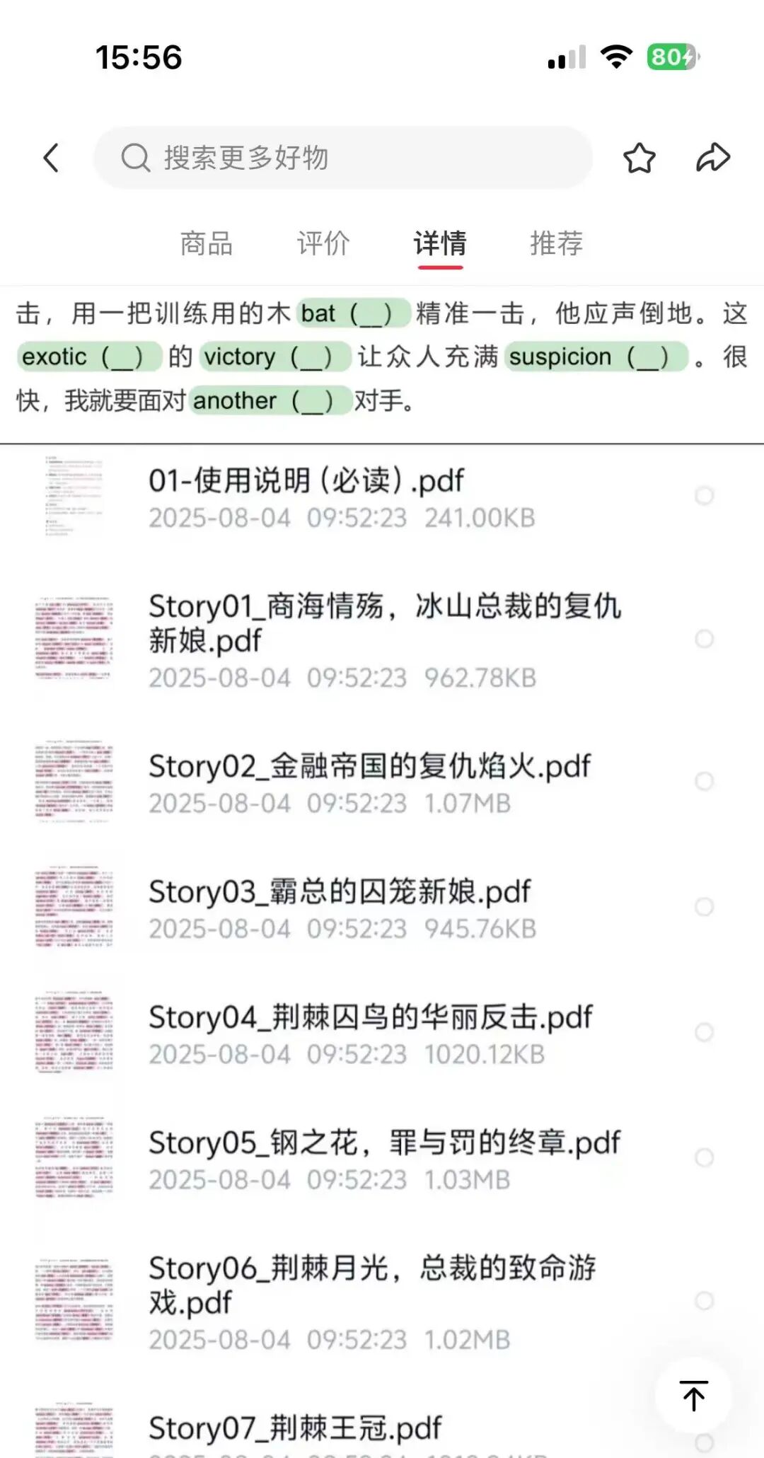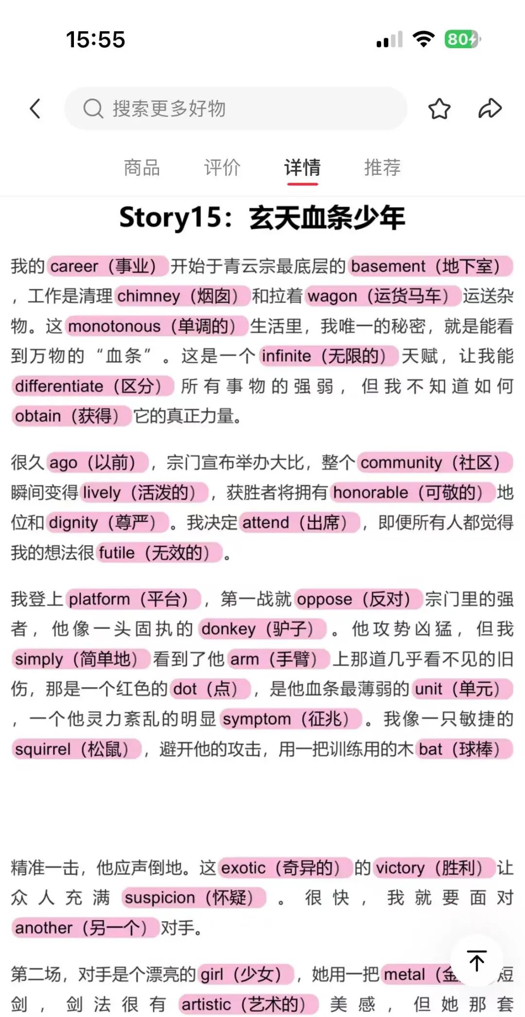这个账号的定位非常清晰,主要定位在英语这个板块,然后助攻英语单词,这个定位就很小众,不会像其他教辅资料那么卷,同时粉丝非常精准,转化率也很好。看了他的产品详情,博主把这些单词植入到故事当中,在阅读故事的同时,不经意间记住了一些单词,这效果还是很好的,比单纯死记硬背要轻松不少。