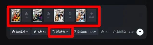 三、作品生成针对这一步骤,我测试了多款工具及提示词,具体包括VIDU Q2版本、可灵的首尾帧、即梦3.0版本。zui终对比结果显示,徐旭大佬推出的即梦——智能多帧这一组工具,是所有测试选项中zui稳的。逐张上传各成品图,在对应选项中选定“智能多帧”。提示词:首帧:人物面向镜头,以优雅的姿态微笑;随后镜头向左横移,下一组乘客的画面随之呈现。其余画面:镜头先向右横移,画面中人物面向镜头优雅微,镜头再次向右横移,自然带出下一组乘客的镜头。