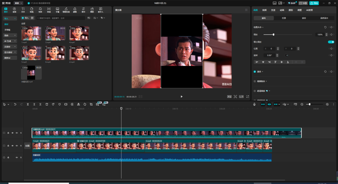 对口型的效果还是很不错的~然后我们依次生成其余6个片段。