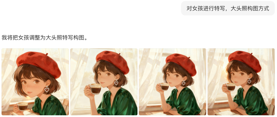 本次针对构图调整“对女孩进行特写,大头照构图方式”:
