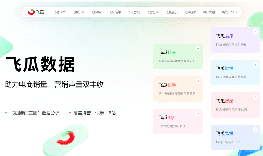 专注抖音、小红书的电商数据工具,提供直播监控、商品榜单、达人带货分析。