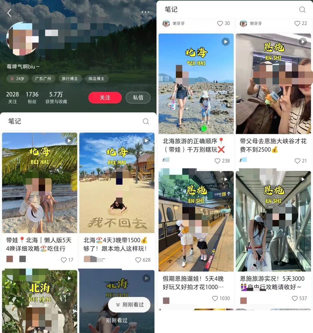 旅游粉常见的打法还是素人玩法,但是不一定是图文笔记,也可以换成上面那种混剪视频玩法。