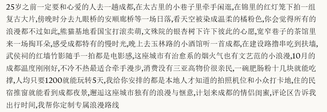 比如晓晓洋在成都,就输出一个成都吧,并且我让他遵循当前时间点来输出,就可以得到多种不同类型的文案了。
