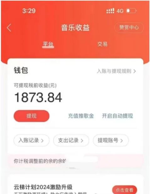 网易云为了激励音乐人,推出了 “云梯计划”。你只要开通音乐人身份,发一首原创歌,就能按播放量拿钱: