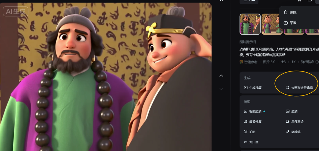 保存下来之后,截图视频里的关键画面,我们后续要用AI来生成3D动画版,