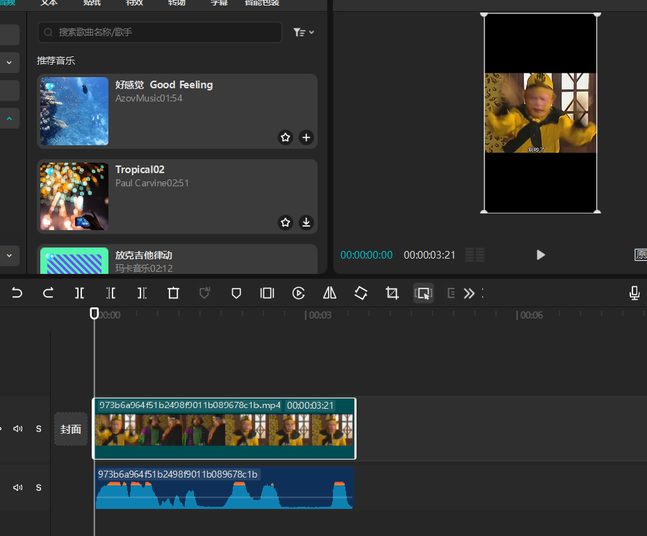 把所有片段依次生成之后,导入剪映,剪辑拼接,