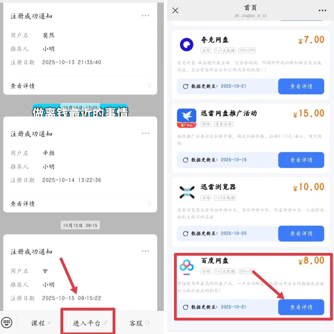 每天就下班的时候搭建一下新的智能体和上传下资源,每天就相当于再多拿一份工资,甚至收益比他每天上班工资还高 那么这个项目怎么做的呢?1.注册网盘推广平台首先得先申请网盘的推广权限,这样分享出去的资源被下载才有收益,不然是没有收益的,而且这个平台最好是我推荐的这个,因为这平台是和百度AI挂钩的,能获得更多曝光机会,当然其他的平台也可以,