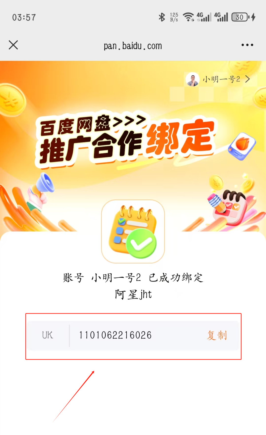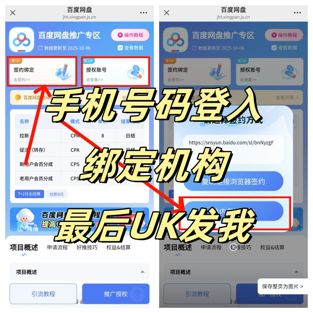 ③:然后点击左上角的 “签约绑定”,选择站内绑定(得先下载注册好百度网盘账号)点击站内绑定就会自动跳转到百度网盘了,点击确认绑定即可绑定后把UK码发我可以免费领半个月百度网盘会员+5T网盘内存