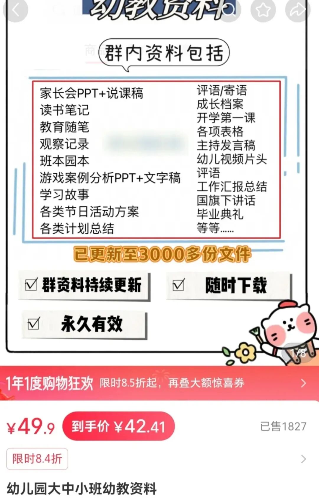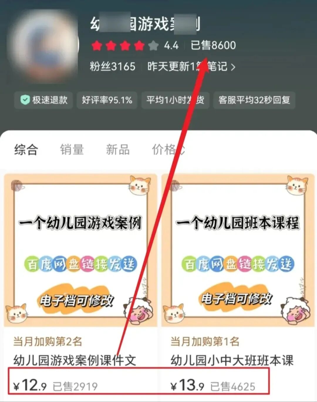 一个真实的案例:一个账号只卖“幼儿园主题游戏PPT合集”,客单价49.9元,销量1300+,算下来利润超6万元。