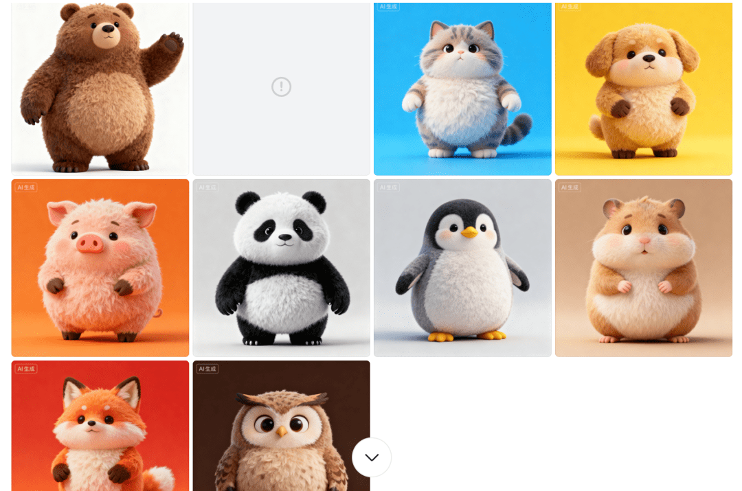 豆包一次只能生成10个图片,先看下面这10个图片,如果都不满意可以再丰富一下提示词,让豆包能更懂我们,只是演示,所以就先从这里面选择一个吧,我们就选择第三个小肥猫吧。