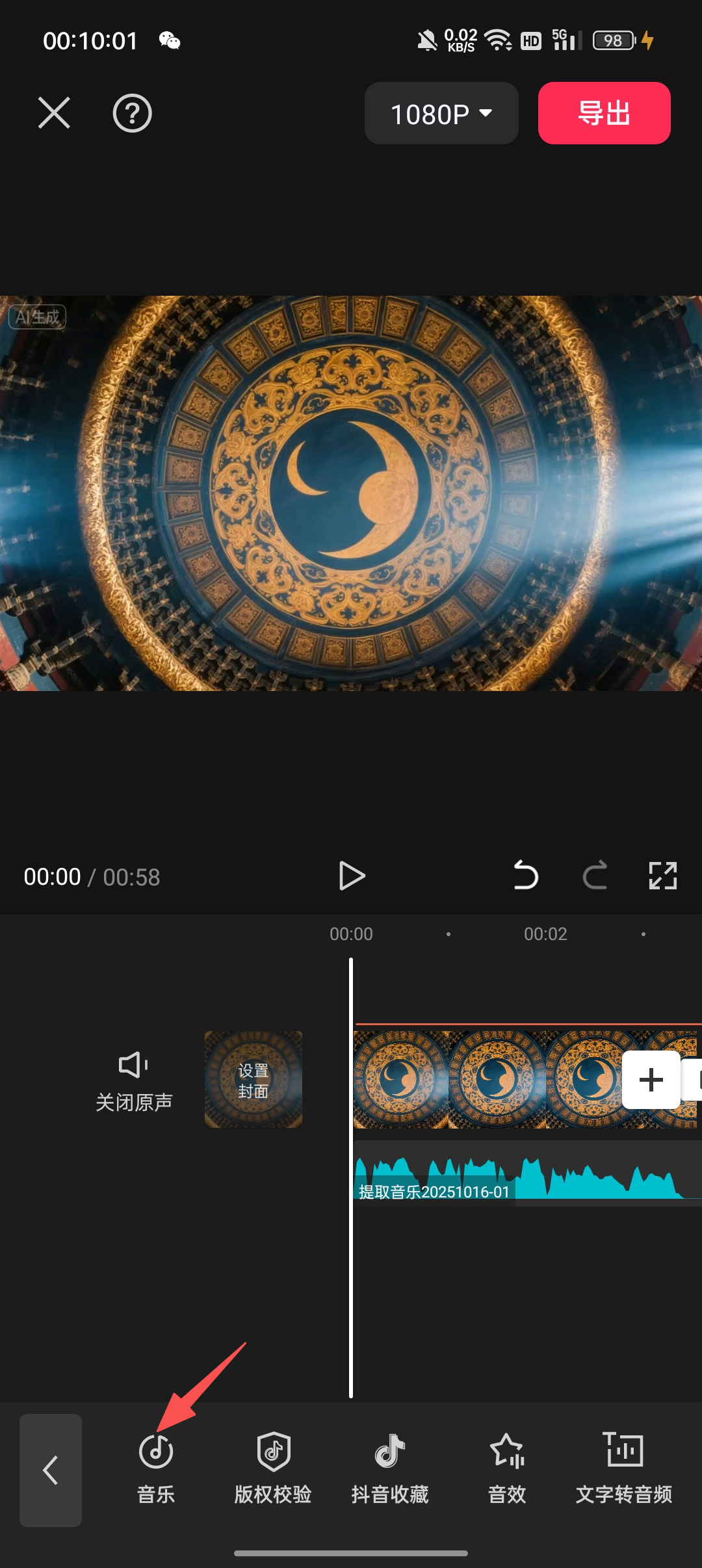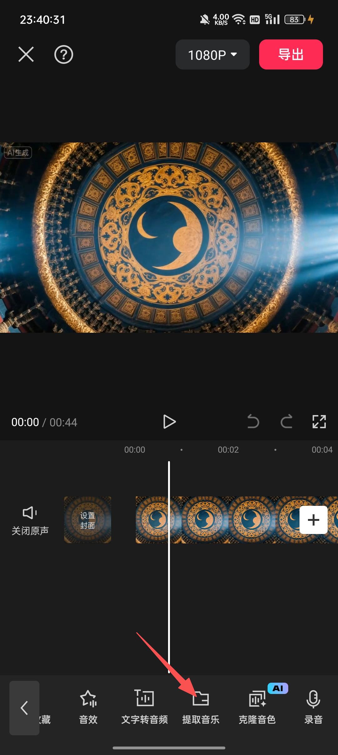 视频效果:剪辑之前记得把配音配好哦,耗子用的是配音蜂后期剪辑:把视频和图片素材导入到剪映,导入音频,添加音乐步骤图如下: