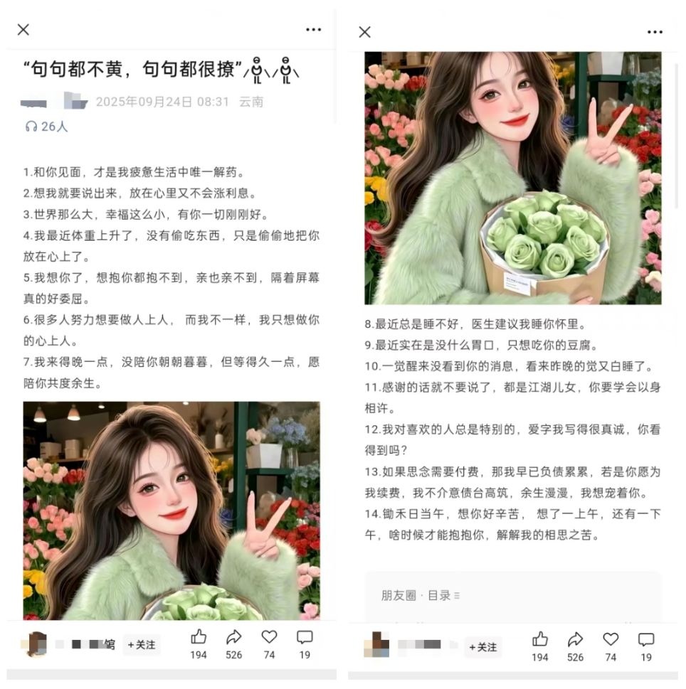 这些文案大多是情侣之间甜蜜、扎心或者治愈的小情话,排版也不讲究,几乎零门槛,谁都能照着做。接下来,咱们直接进入实操环节。
