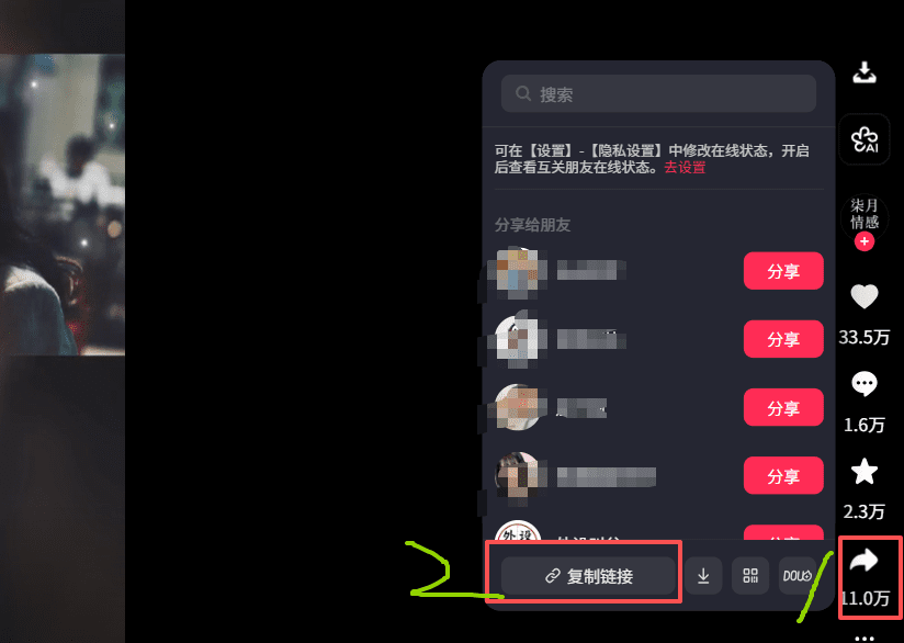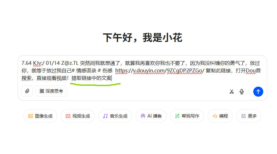 1. 提取文案直接抖音搜情感文案或者情感语录或者水豚噜噜复制链接