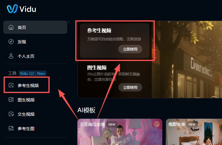 2、vidu手机端直接去你手机自带的应用商店搜索即梦下载就行电脑网页端:https://www.vidu.cn/create进入应用后,选择左侧的参考生视频