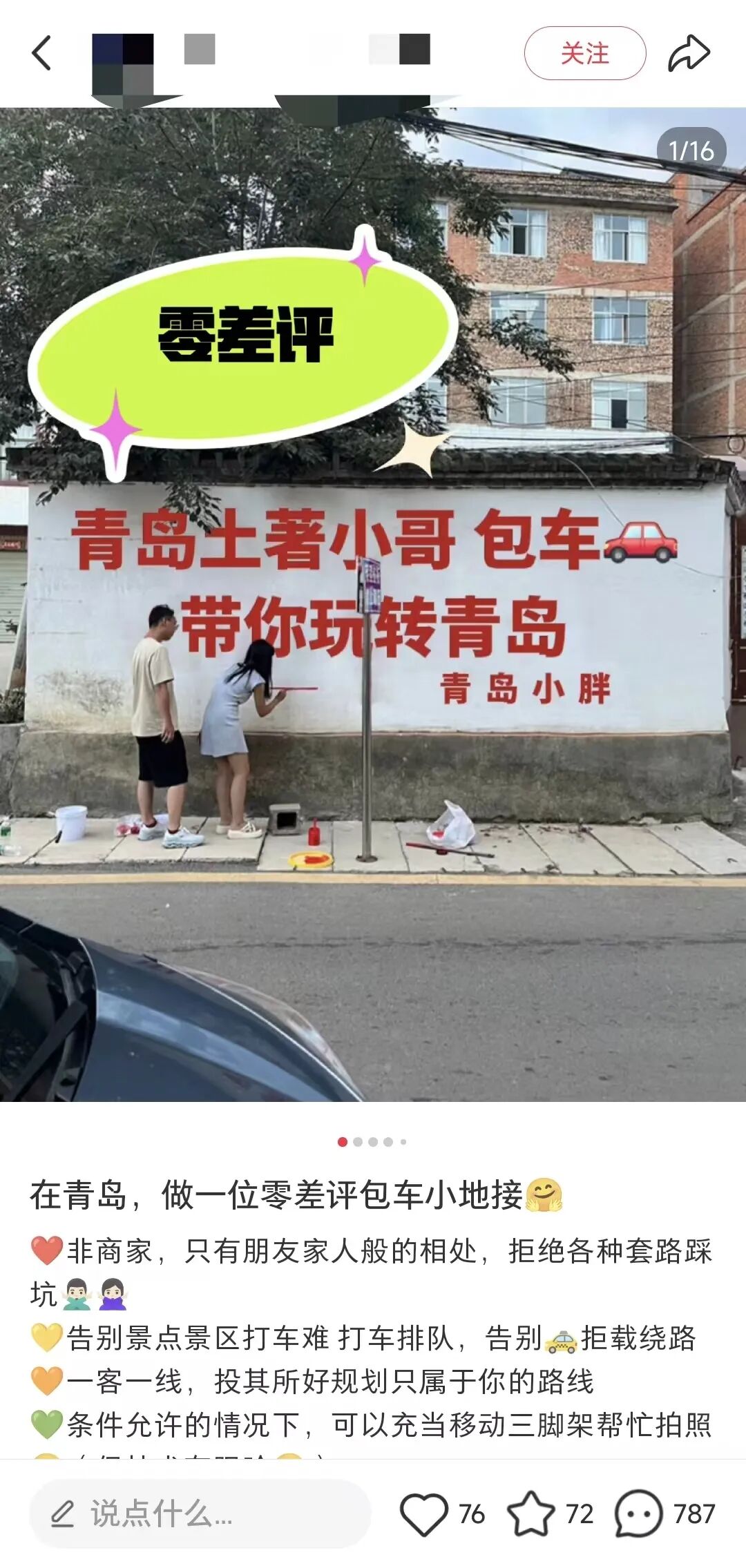 我们看下面这个笔记也是,是一个在青岛做旅游包车的账号,也是拿这种类型的笔记做一个置顶笔记。