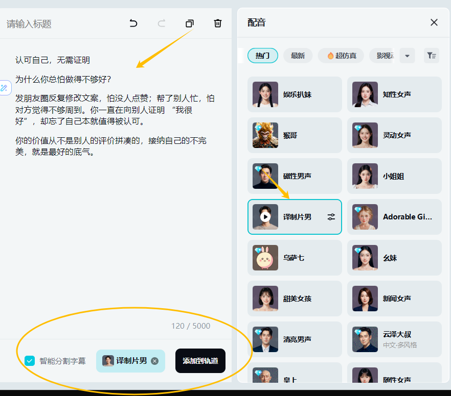 选择一个配音,把我们准备好的文案复制进去就可以了。