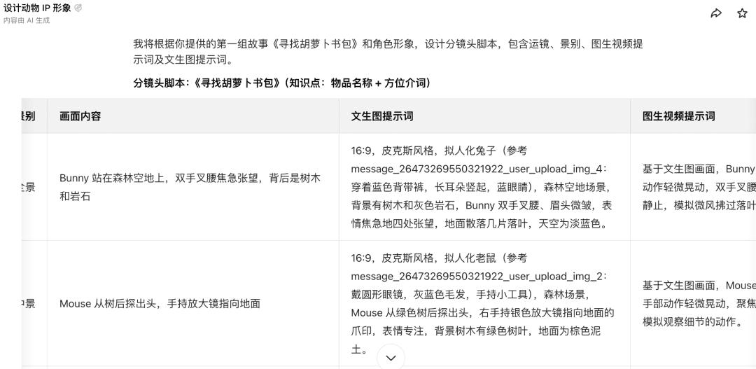 大家可以让豆包多生成几组,从中选择一组合适的。文案设计好之后,下面继续对话,让豆包给我们生成分镜头脚本,输入如下指令:
