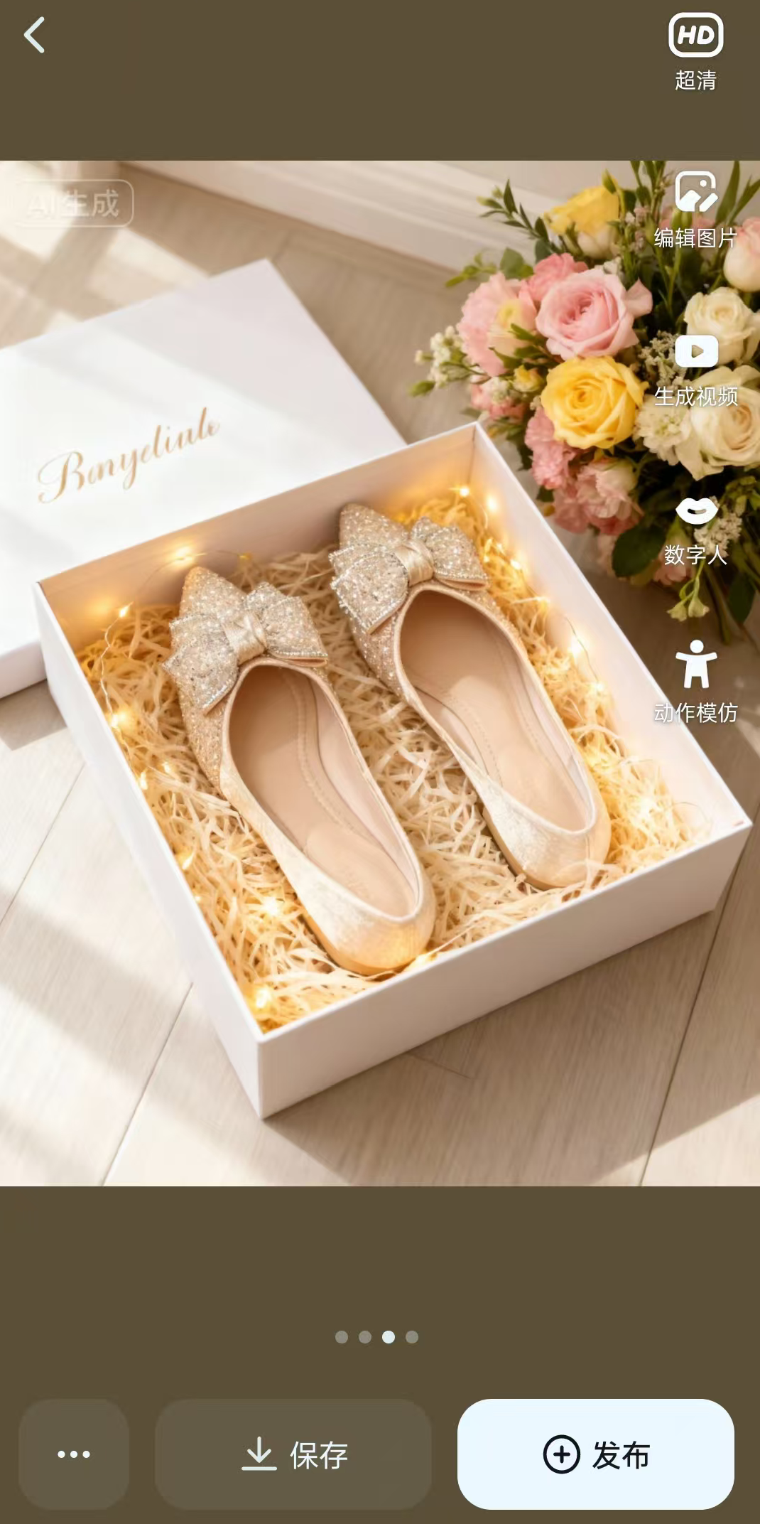 也非常简单,手机安装一个即梦app,然后搜索鞋子,就可以找到和上面图片里类似的图片,如下图所示: