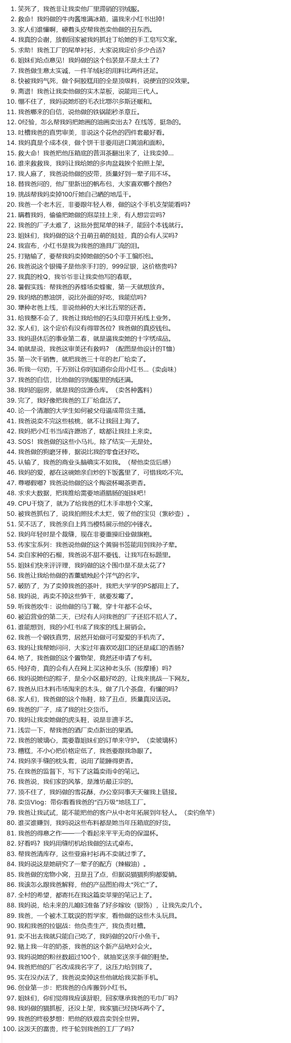 老朋友应该还记得晓晓洋讲过的这个父母找子女求助的玩法,关于帮爸爸帮家里人卖东西,这是晓晓洋去年11月份讲过的玩法了,下面这些不管是特产零食还是服装工厂还是其他产业都是适合的。