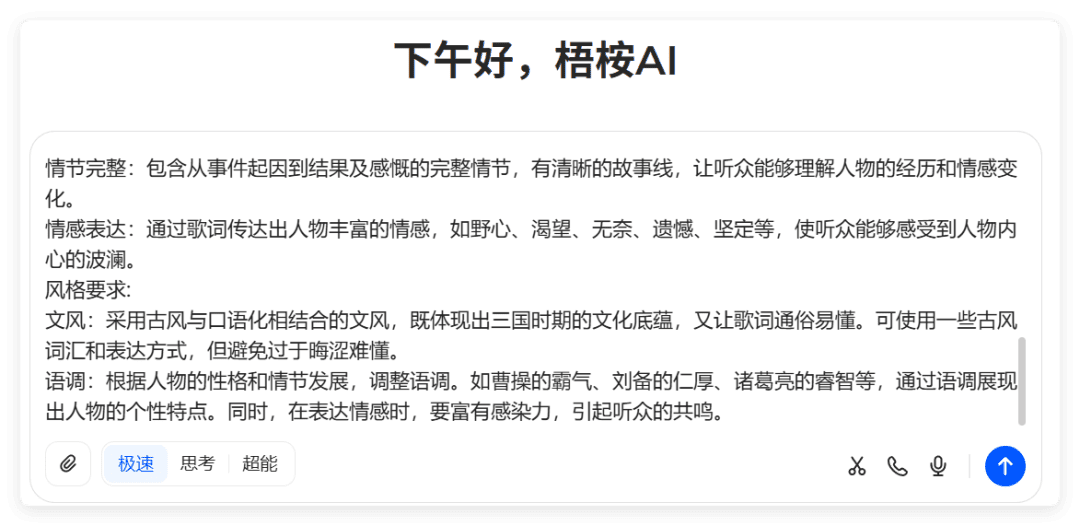 1.有条件的可以用suno,我用的tunne,详细使用教程可以看这篇Tunee太懂人心了!一句想念爷爷奶奶,它写出了我童年的夏天2.把豆包写的歌词给tunne,输入你想要的曲风要求