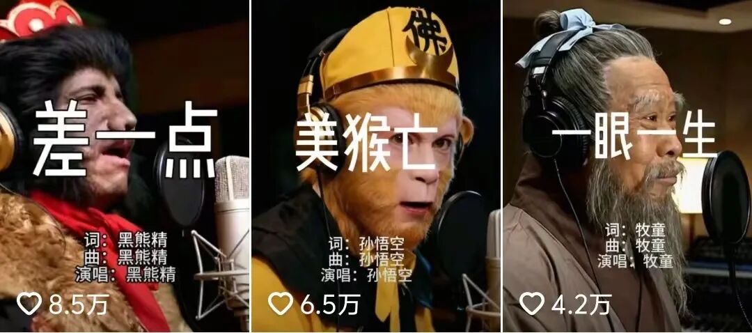 最近新起的音乐号都刷到了吧,《西游记》里角色内心独白作曲,用他们的形象做成数字人制作的AI视频,《西游记》是国民级IP,上到老下到小都不知道看了多少遍;博主的创意真的很好,每个角色都有鲜明的性格特点和故事背景,通过创作展现出另一个视角的角色内心。