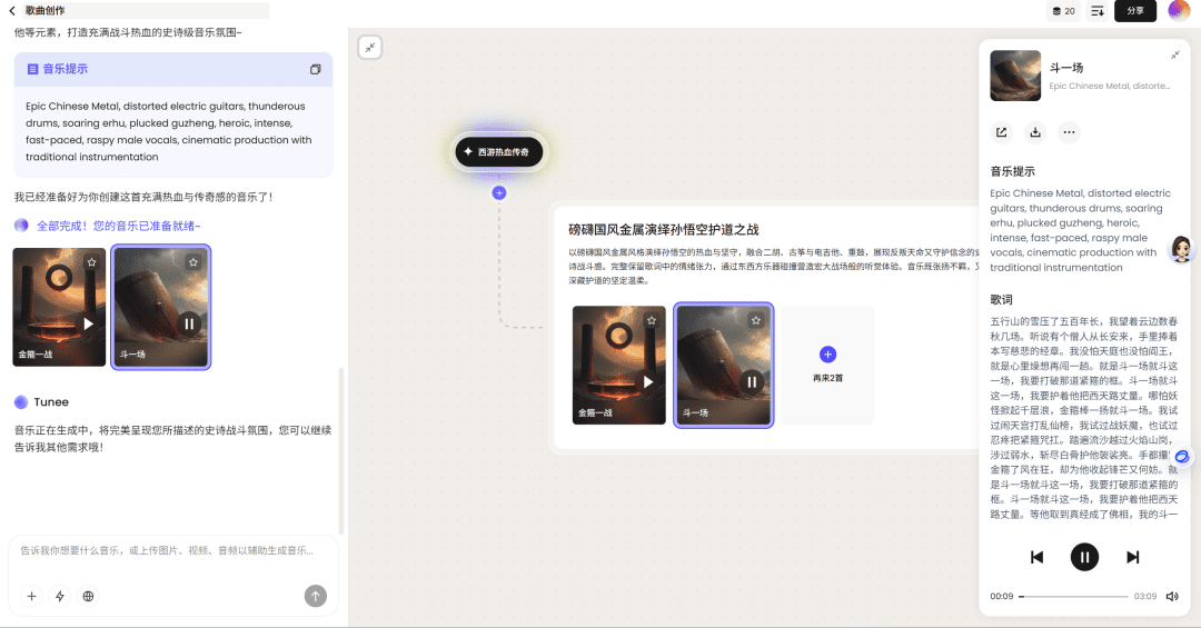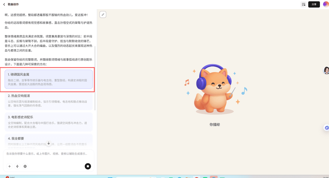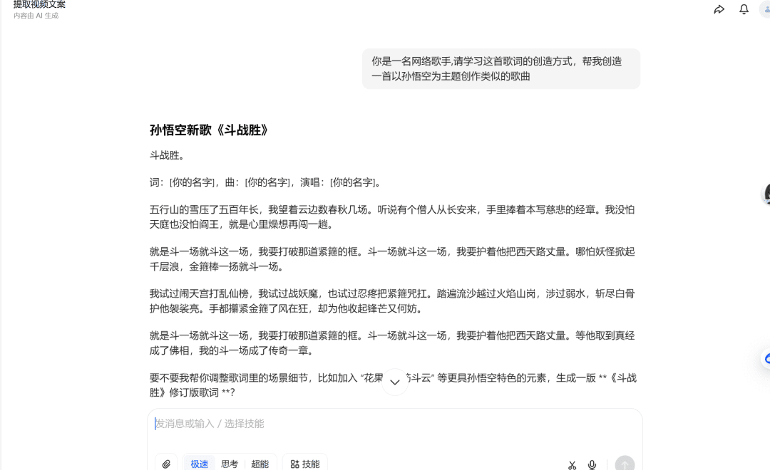 豆包就帮我们生成一首孙悟空的专属歌曲