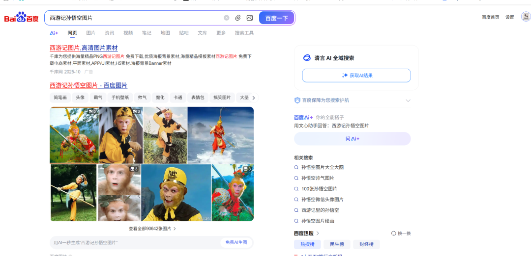 3.生成影视人物歌手形象和对口型借助百度搜索关于”孙悟空”的图片,下载下来作为参考图