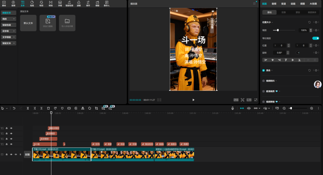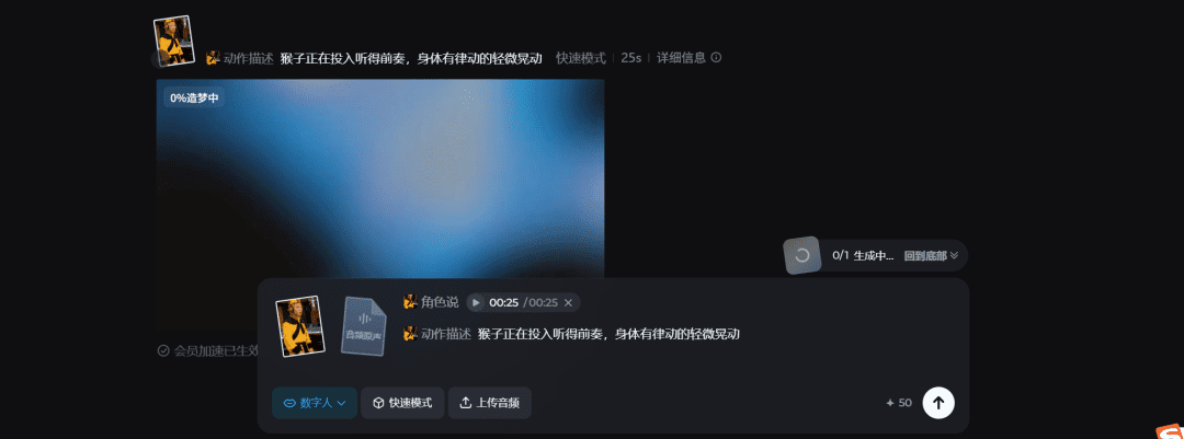 对口型默认只能30秒,用剪映把音频切割成若干段,等生成在进行拼接