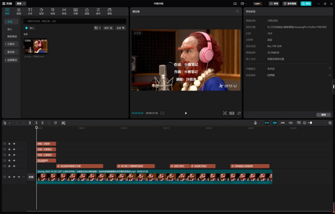 找到沙僧的人物原型,利用即梦AI二创,进行录音棚的歌手形象设计和数字人配音对口型