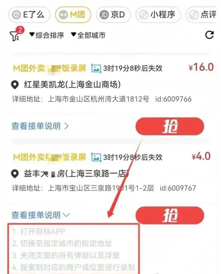 比如上海金山红星美凯龙的录屏单给 4 元,
