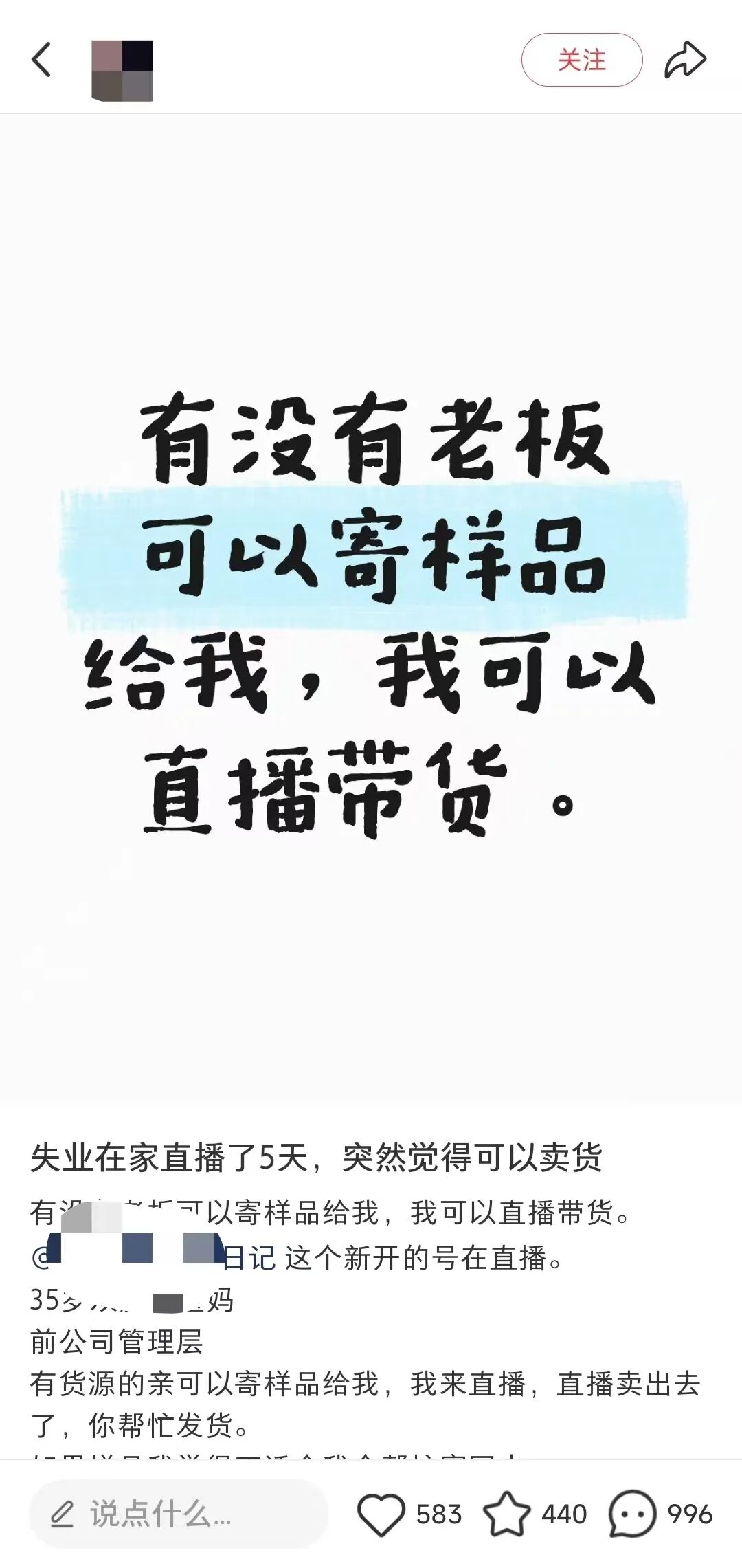 那除了商家找个人,晓晓洋还说一个个人找卖家的技巧,就是下面这个,有没有老板可以寄样品直播带货。