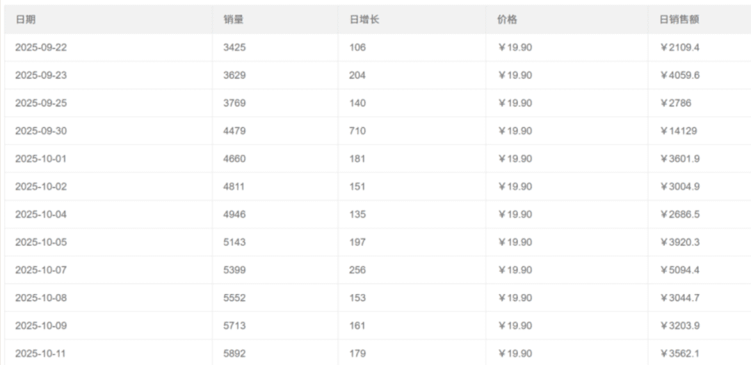 看看他9月底和10月初这几天的数据,每天稳定卖100-200单,日利润两三千打底。