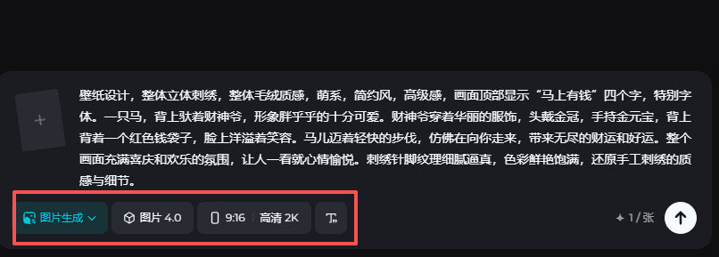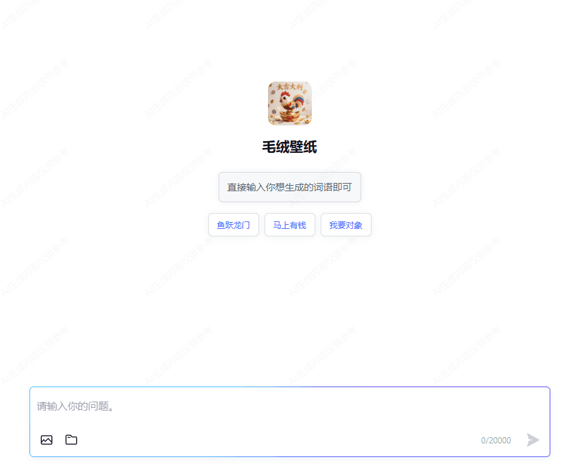 直接输入你想生成的文案内容,比如“马上有钱”“鱼跃龙门”等等智能体就会帮我们生成出图提示词