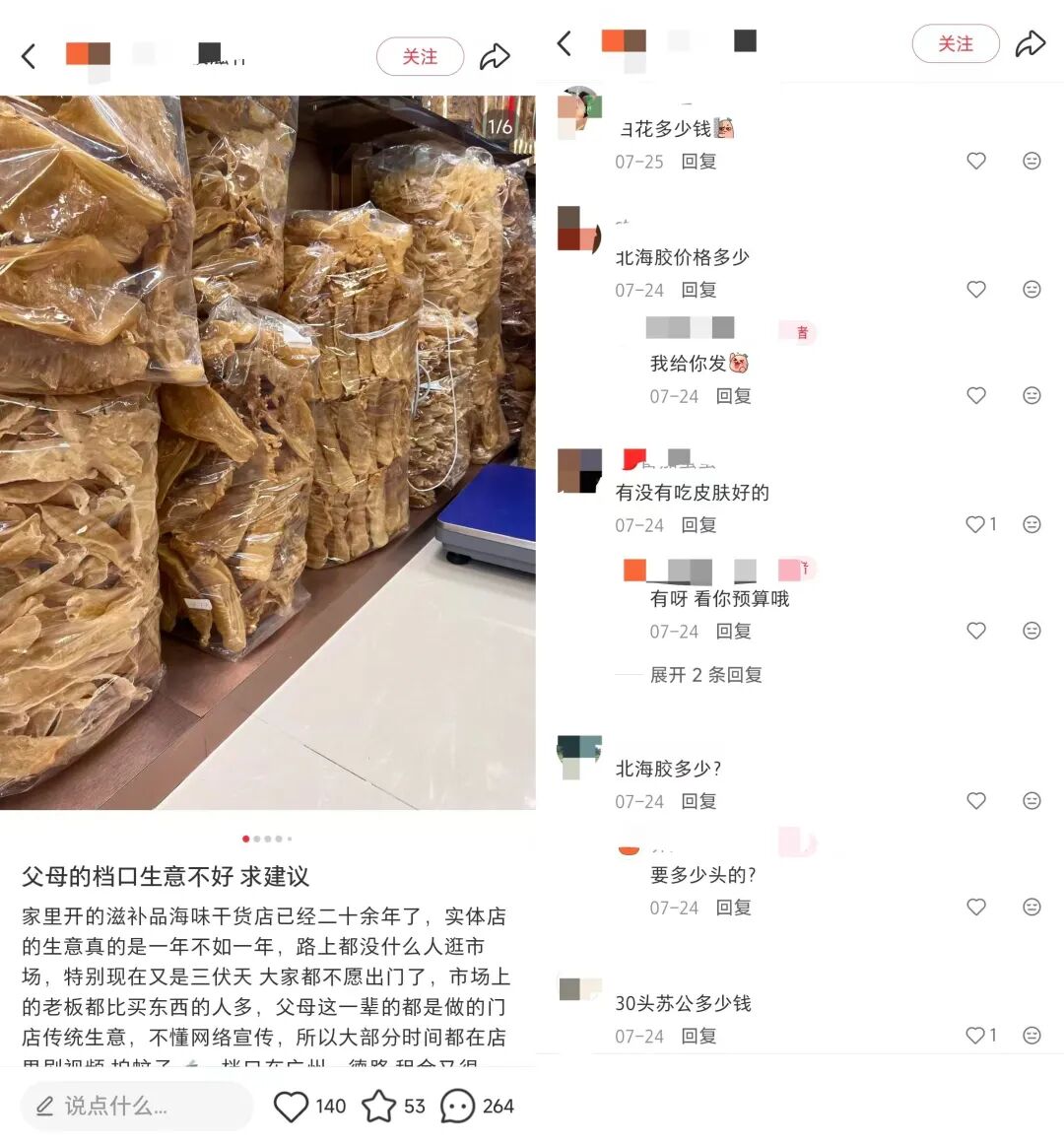 我们看下面这个卖滋补品的,是一家开档口生意的,就是拍拍店里的货品,然后标题生意惨淡怎么维持,这个笔记就是一个互动笔记,就可以吸引很多人给建议也好,吐槽也好,就要比很多时候你去重营销要有流量。