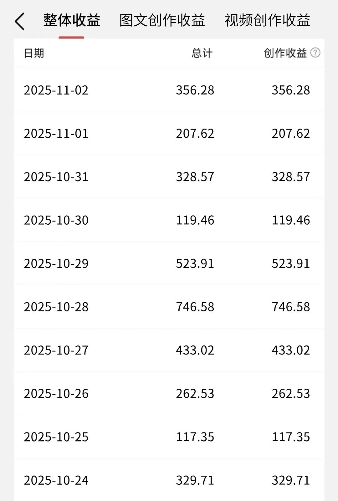 这个平台流量非常巨大,我见过一个每天只发微头条的用户,每天阅读量只有几十几百,坚持了3-4年,累积收入也有1万多。
