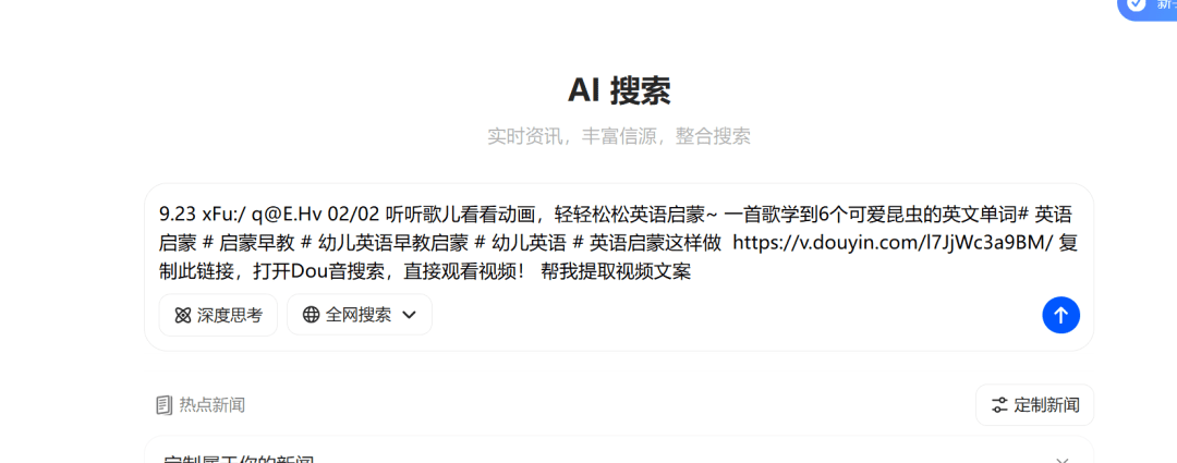 实战教程1.文案生成提示词生成常用kimi、deepseek、claude、chatgpt或者豆包等等工具进行生成,这边我使用deepseek网址:https://www.doubao.com/chat/search复制对标视频链接扔给豆包进行文案提取