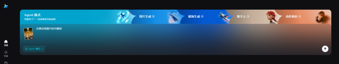 1.打开即梦,选择Agent模式,上传刚刚导出的图片,输入提示词: