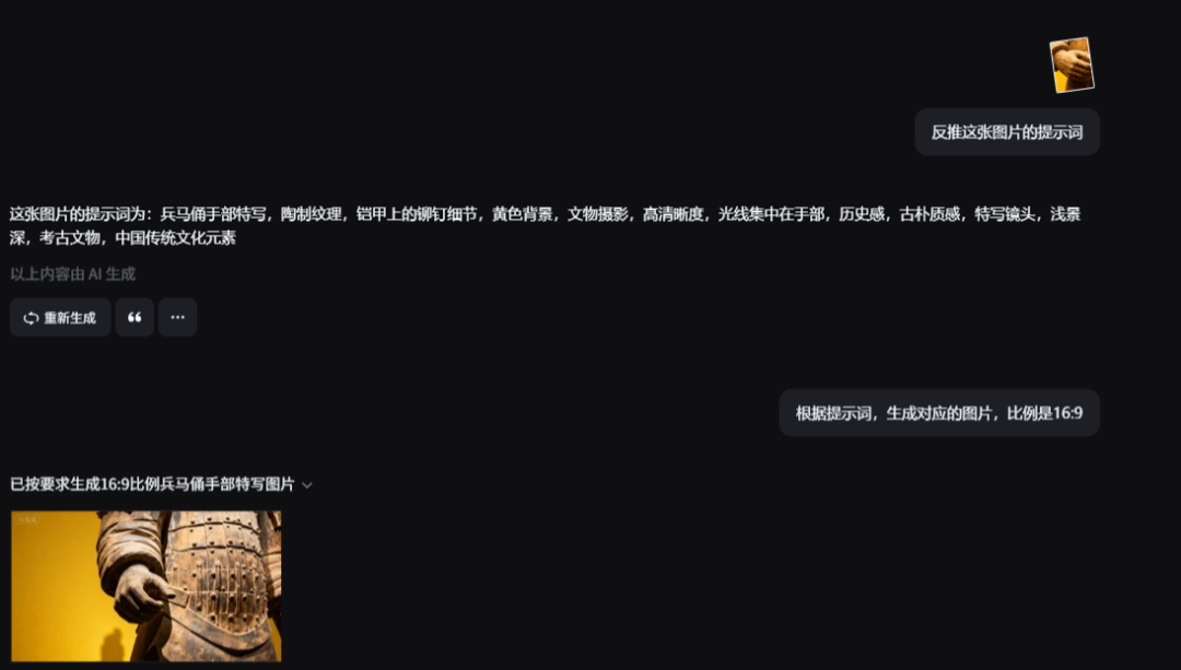 之后,用新生成的图再去反推关键词,往往能得出更精准的描述。