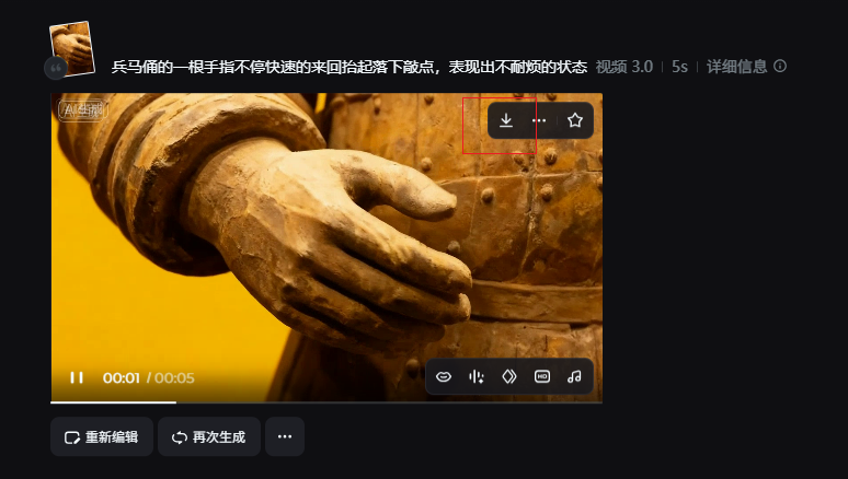 兵马俑的一根手指不停快速的来回抬起落下敲点,表现出不耐烦的状态。