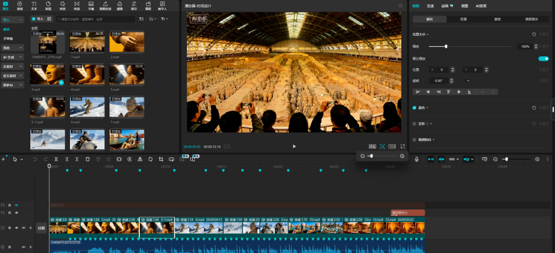 1.按顺序导入所有视频与图片素材,匹配音频轨道。