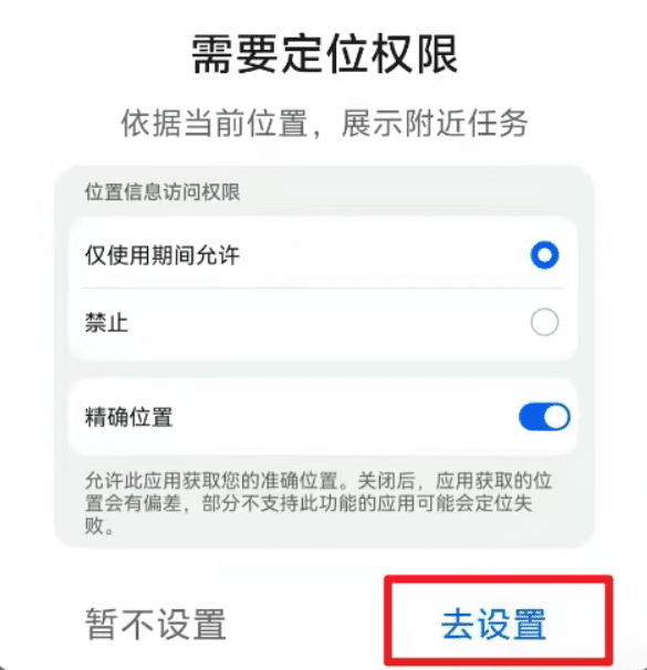第二步:权限设置 进入APP后,确保打开手机定位权限并关闭手机的“开发者模式”,否则可能无法接到任务。