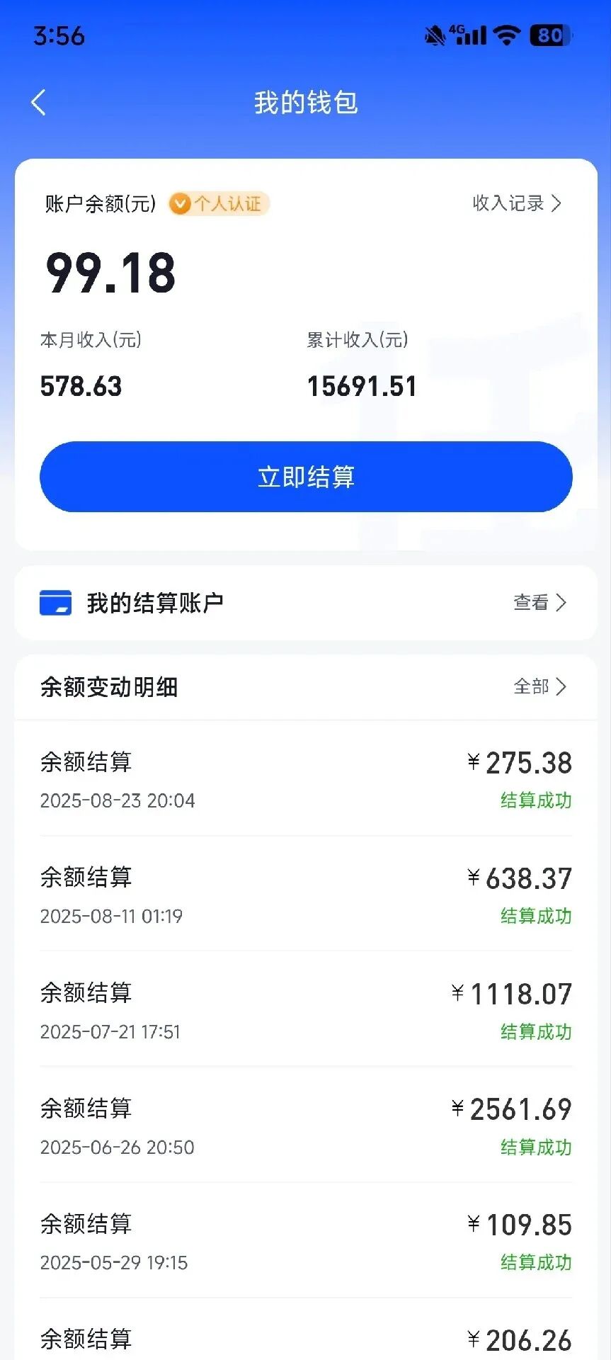界面看起来简洁舒适,收入也不错,例如我做的短剧推文,做了几个月,累计收入15691元,真的太香了!