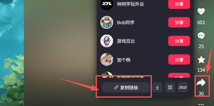 然后选一个视频,点击进去,直接点击分享,复制链接