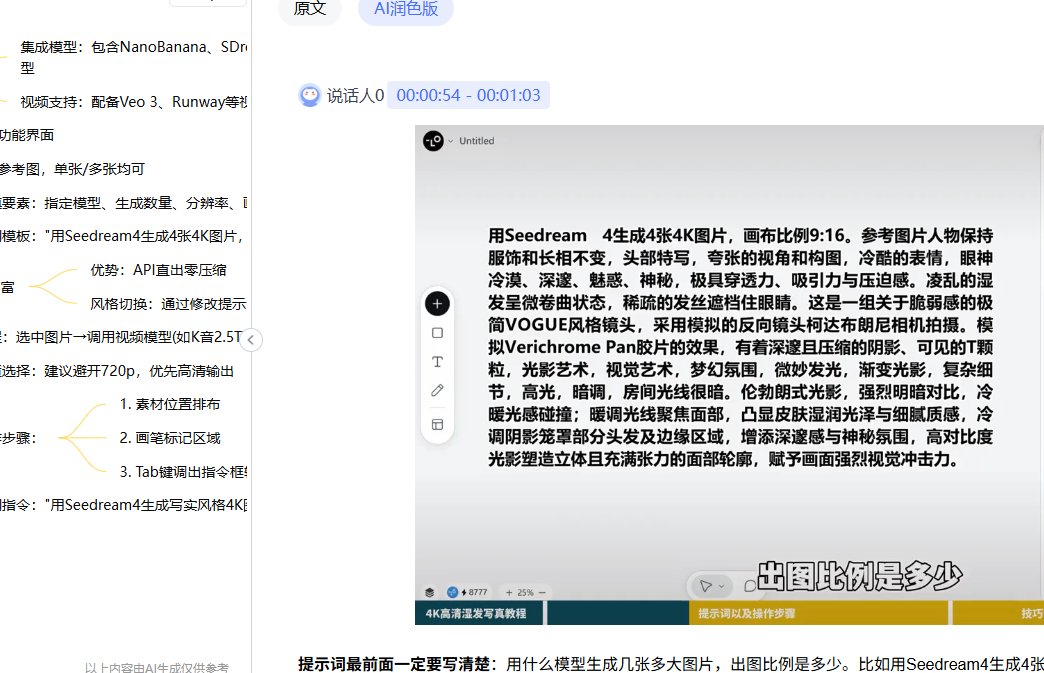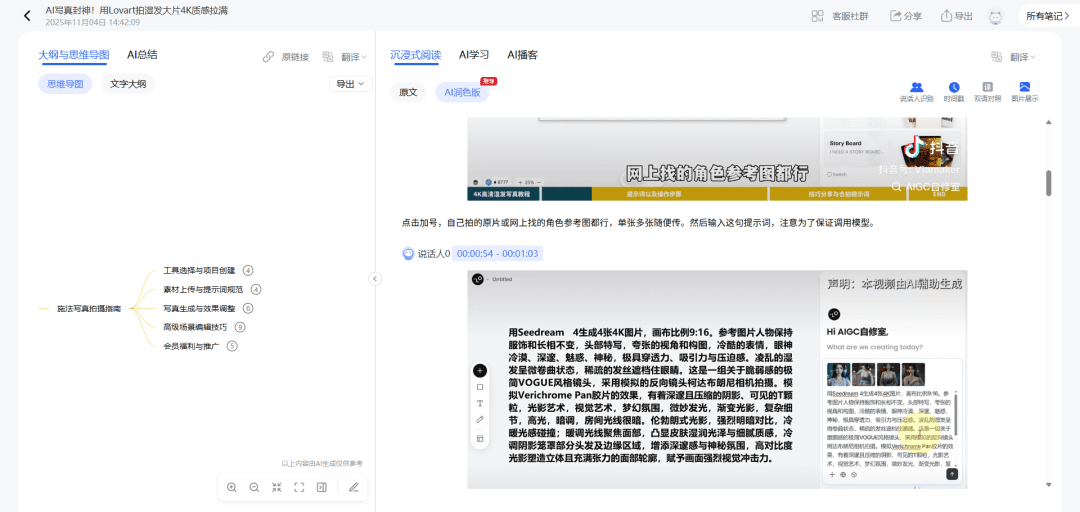 然后就进入到详细的图文并茂页面了文章不但将视频里面的声音转成文案,还将重要的节点自动生成截图了