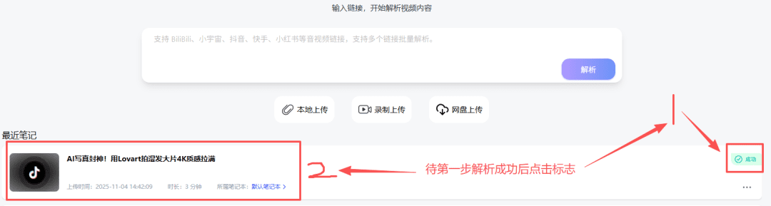 然后将链接粘贴到AI好记里面,点击解析