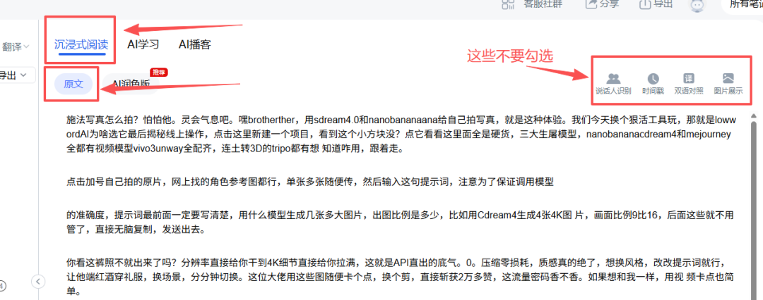 进入到页面以后,选择原文,同时将图片去掉,就得到这个视频的文案
