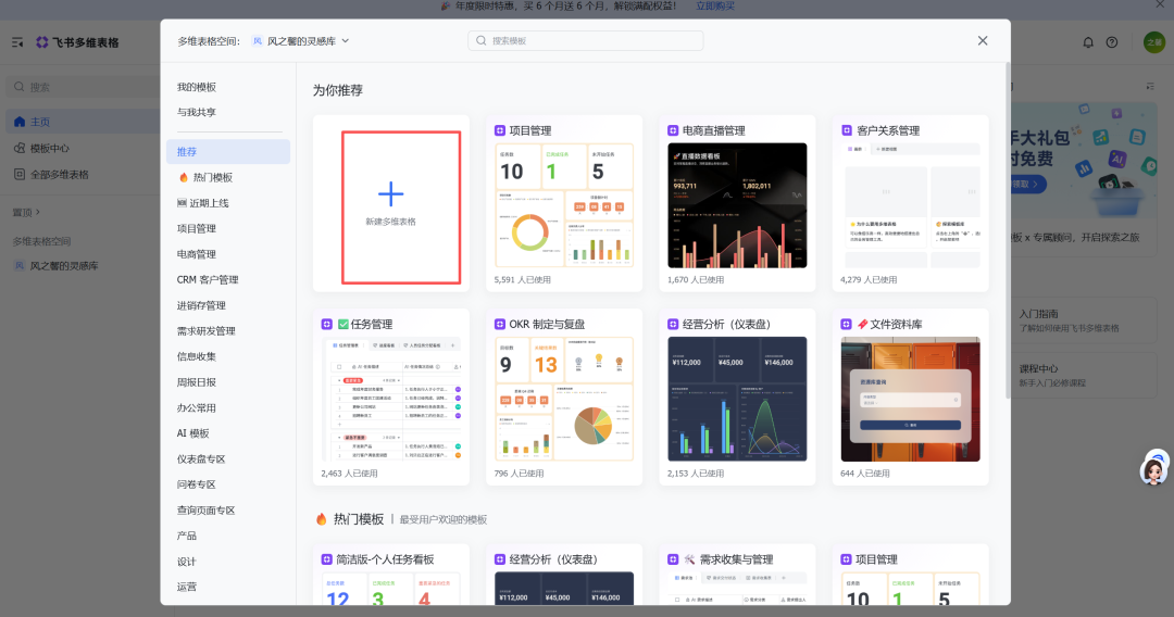 2.打开飞书多维表格网址:https://icn7hj66zbgu.feishu.cn/base用手机号码注册,进入点击创建多维表格