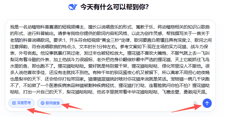 打开deep seek,打开深度思考和互联网思考,粘贴口令词口令词:我是一名动植物科普赛道的短视频博主,擅长以说唱音乐的形式,寓教于乐,将动植物相关的知识以歌曲的形式,进行科普输出。请参考我给你提供的歌词内容和风格,以此为创作灵感,帮我撰写关于一首关于”XXX(动物)的科普说唱歌词。要求:1、开头符合短视频“黄金三秒“定律,歌词要直白易懂且具有深度;2、歌词之间注意押韵,符合说唱歌曲的特点;3、文本时长1分钟左右。参考文案如下:(投喂参考文案)