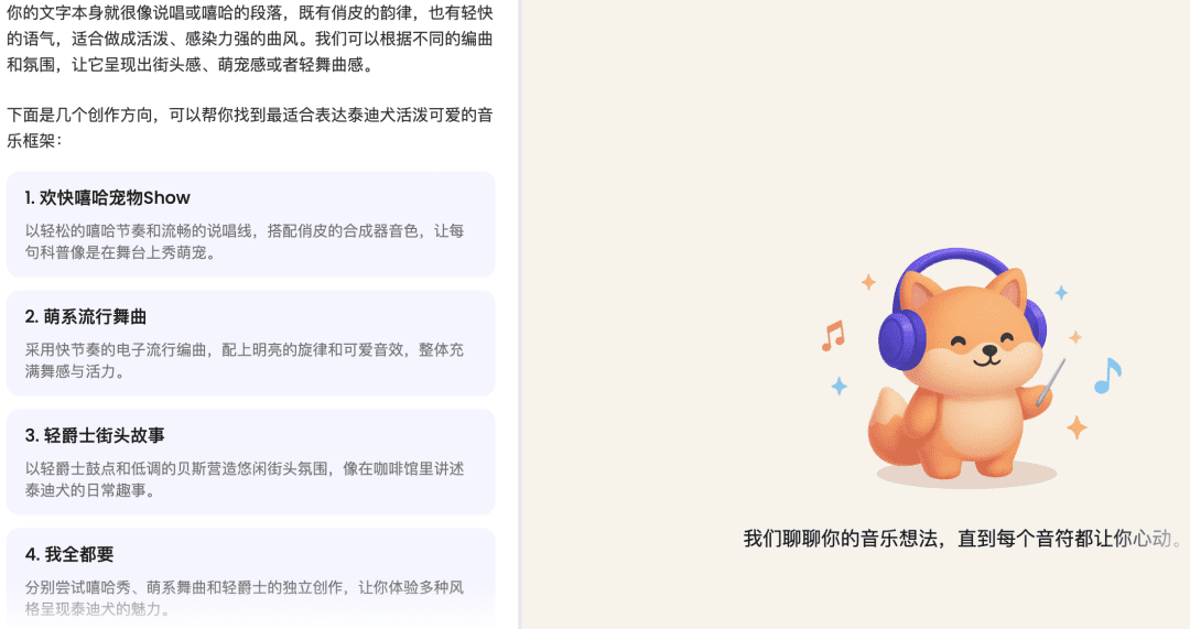 先带大家来试听嘻哈宠物风格的: 大家可以对生成的6首歌曲都试听一下,选择自己喜欢的开始制作。