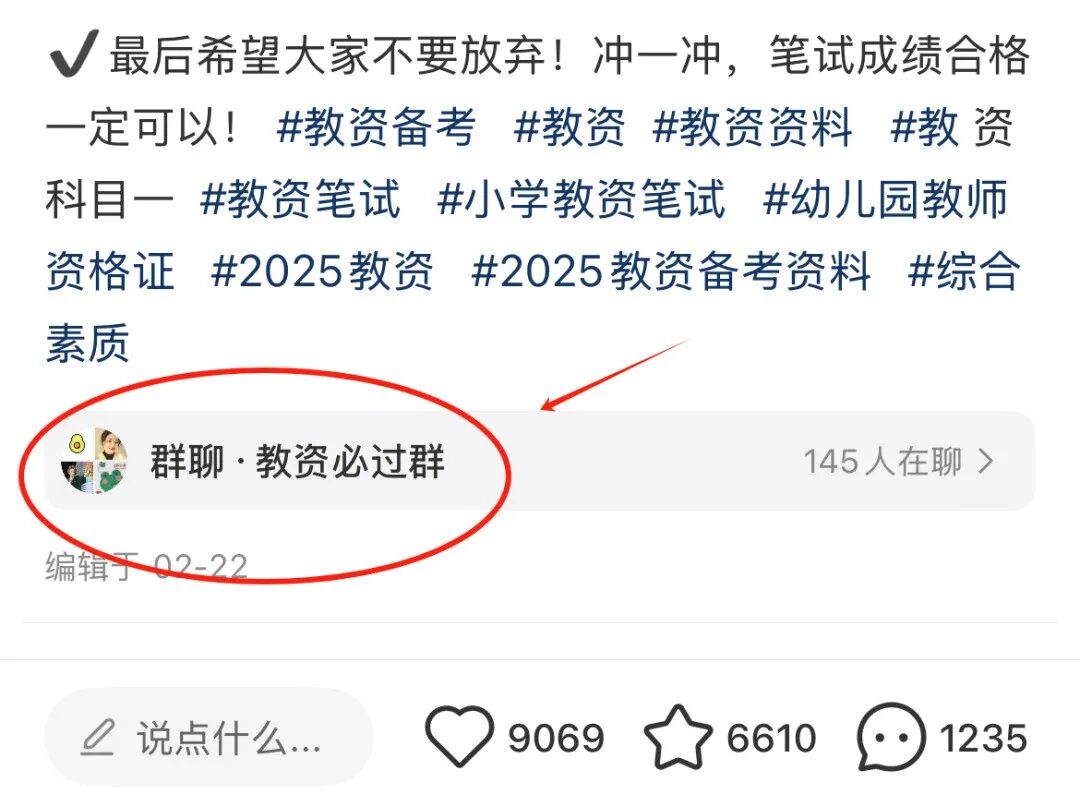 笔记内容很简单:用手机做几张知识点卡片(用醒图、黄油相机这种免费软件),配上标题”教资必背50条”、”面试高频问题汇总”这种。